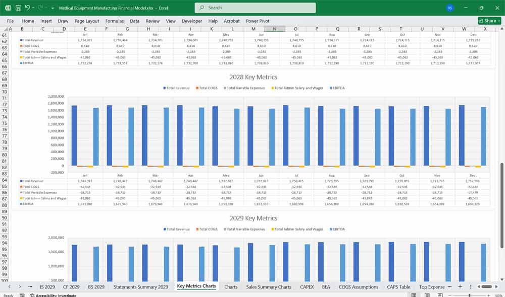 A financial model for a medical equipment manufacturer provides a detailed framework to forecast revenue, manage expenses, analyze cash flow, and assess financial stability. By incorporating key financial statements and performance metrics, companies can optimize operations, attract investors, and plan for long-term growth.