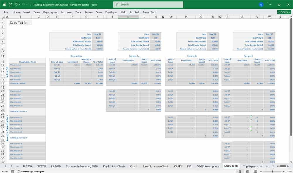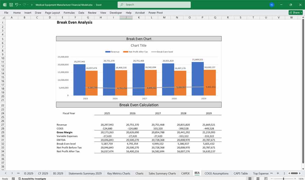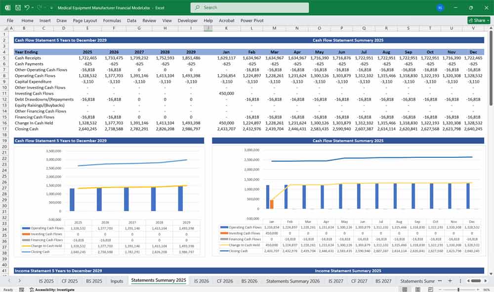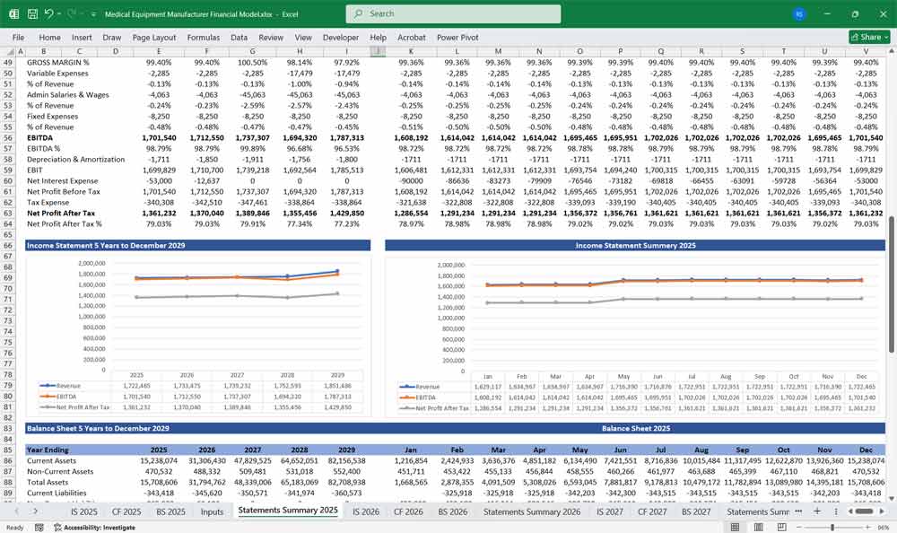 A financial model for a medical equipment manufacturer is a structured framework used to project financial performance, analyze profitability, assess cash flow needs, and evaluate capital requirements. It typically includes three primary financial statements: