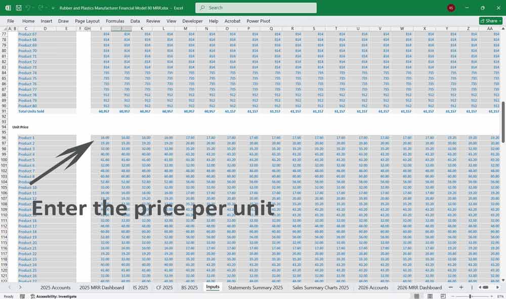 This 20 Year 80 product line Rubber and Plastics Manufacturer Financial Model in Excel is a comprehensive financial planning tool designed to help your manufacturing company, investors, and financial analysts evaluate the financial feasibility and profitability of your company.