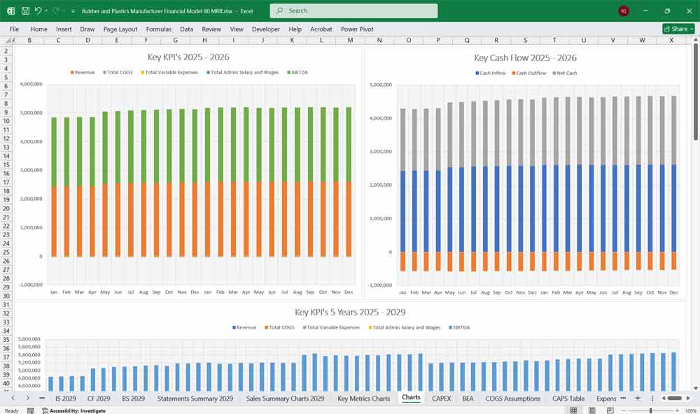 This Rubber and Plastics Manufacturer Financial Model provides a structured approach to managing revenues, expenses, cash flows, and financial stability for your Rubber and Plastics company. By tracking financial model statements and key metrics, the company can optimize profitability, control costs, and plan for future expansion.