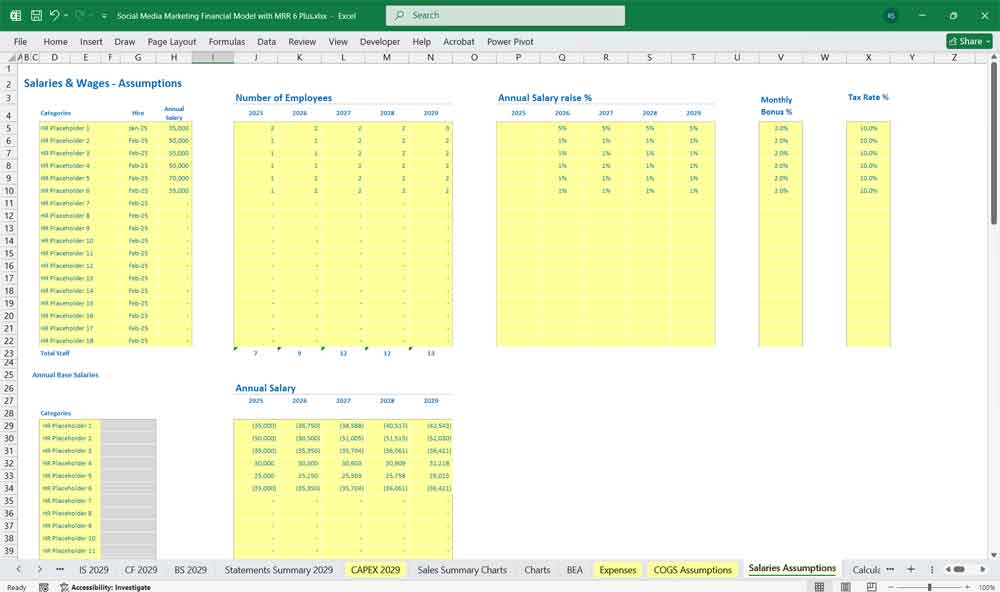 Direct Labor Costs: Salaries/wages of employees directly involved in service delivery (e.g., social media managers, content creators, designers).